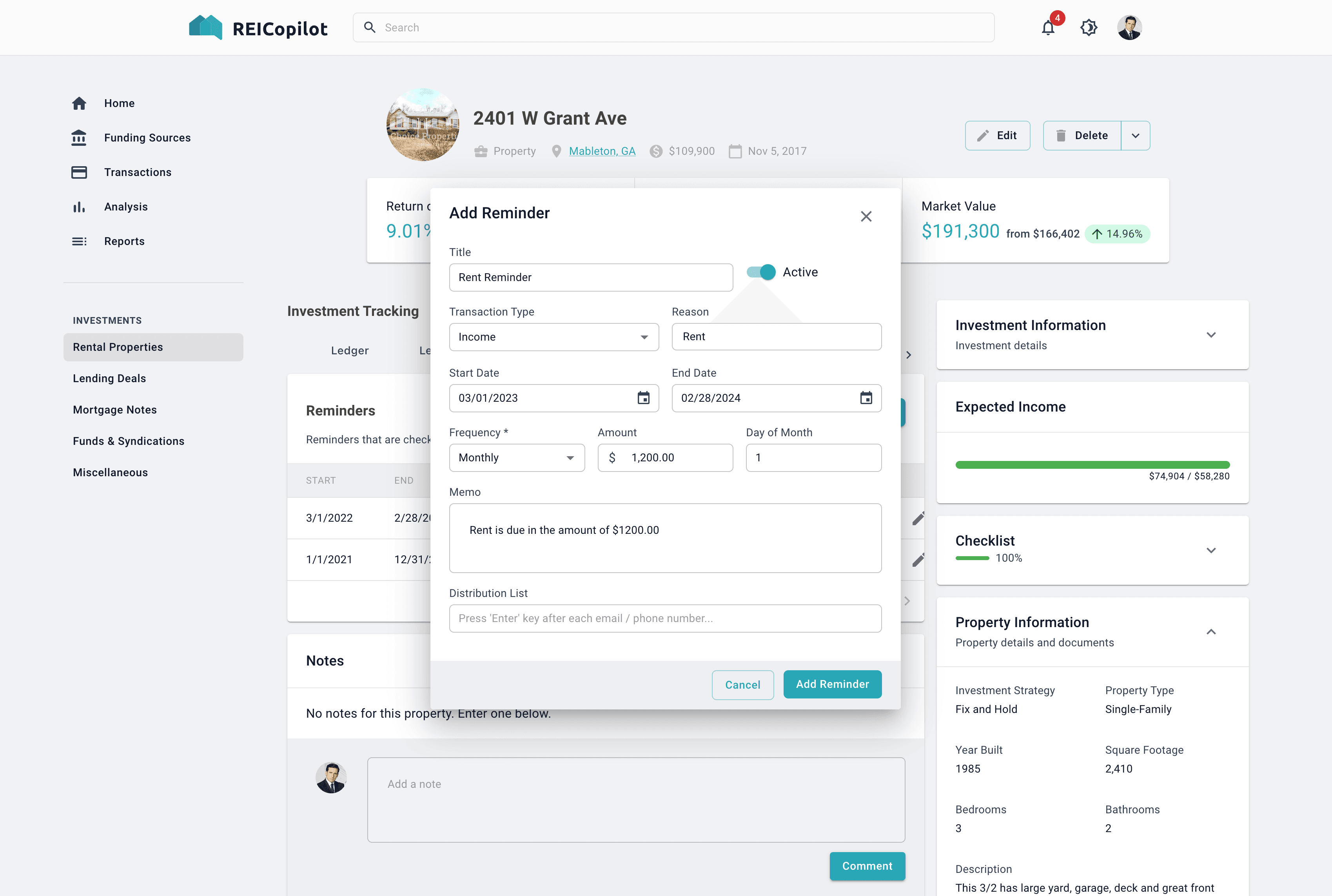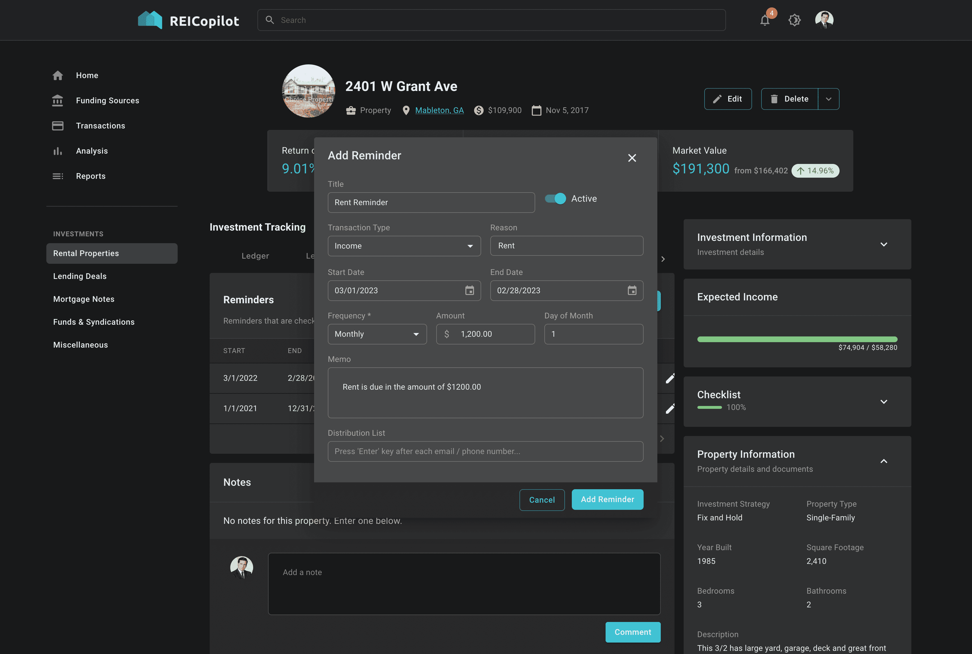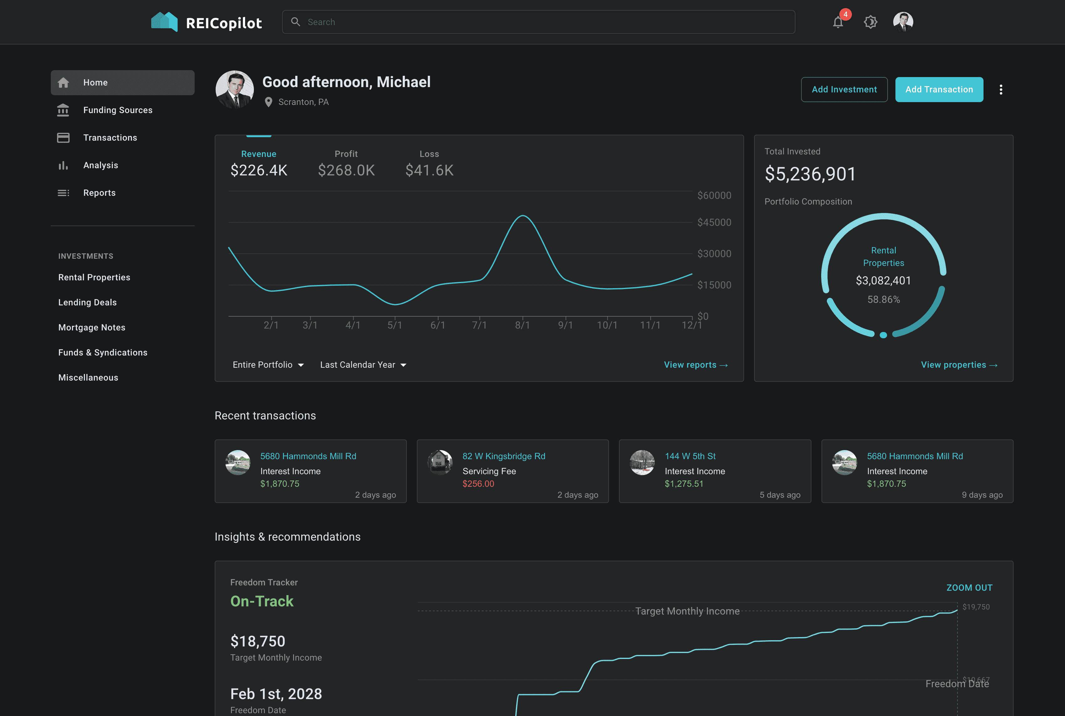 “The software is very impressive, super simple, super straightforward. The one thing that I've learned as a professional lender is that the vast majority of investors don't know how to manage their portfolio, they don't know how to do the calculations, they don't know how to do a lot of things. REI Copilot really does simplify and enable an investor with less skill to get into the game. The software itself will keep track of what you need to know, which is really important for any investor regardless of their experience, especially as you scale and the complexity of your portfolio increases.”